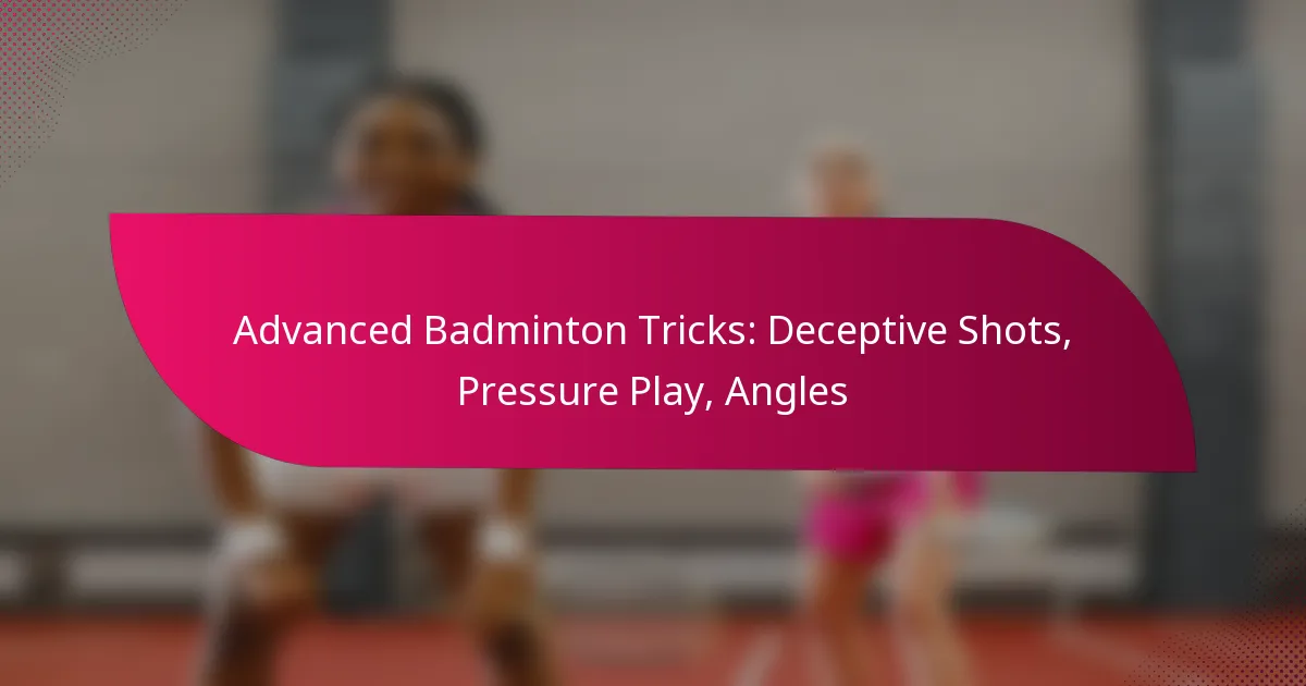 Advanced tricks in badminton include deceptive shots, angle manipulation, and pressure play techniques. Deceptive shots, such as the fake smash or sudden drop shot, are designed to mislead opponents about the trajectory of the shuttlecock. Angle manipulation involves hitting the shuttle at unconventional angles to create difficult returns for the opponent.