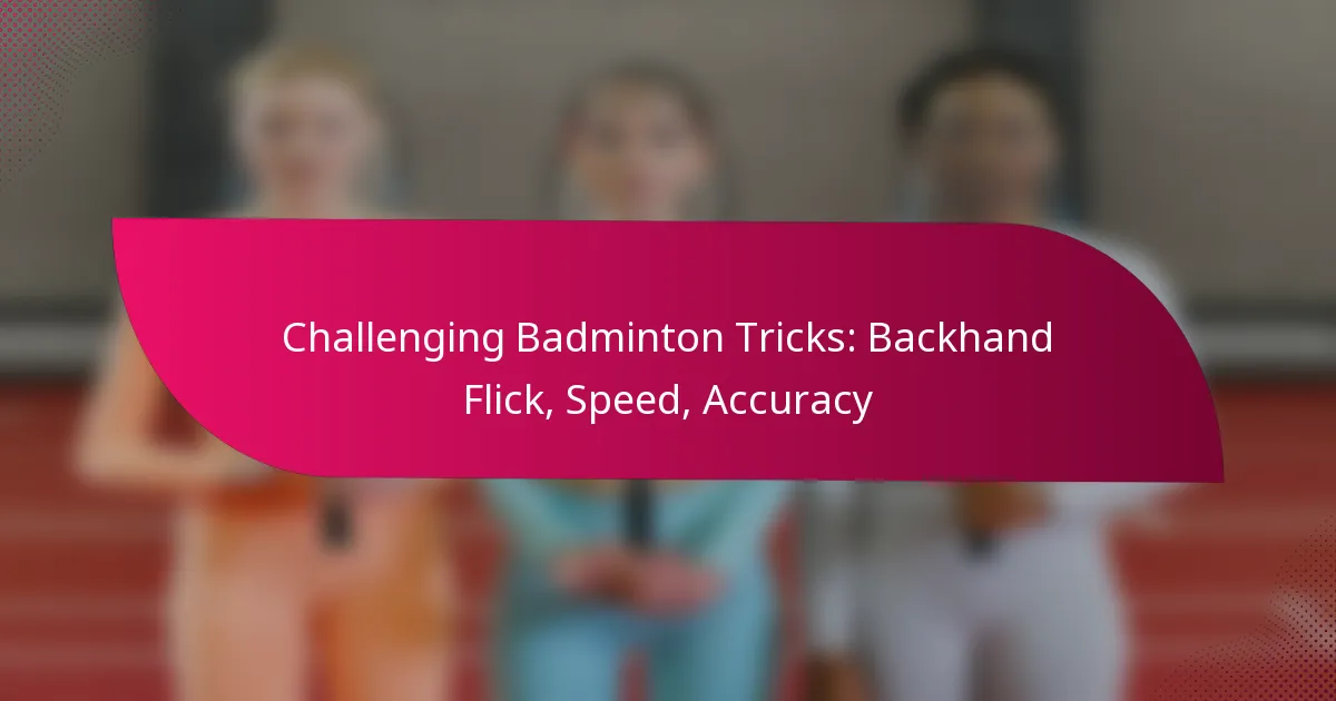 Mastering badminton tricks like the backhand flick requires the right equipment to enhance speed and accuracy. Key items include advanced rackets, suitable shuttlecocks, and appropriate footwear, all of which contribute to improved performance and technique.